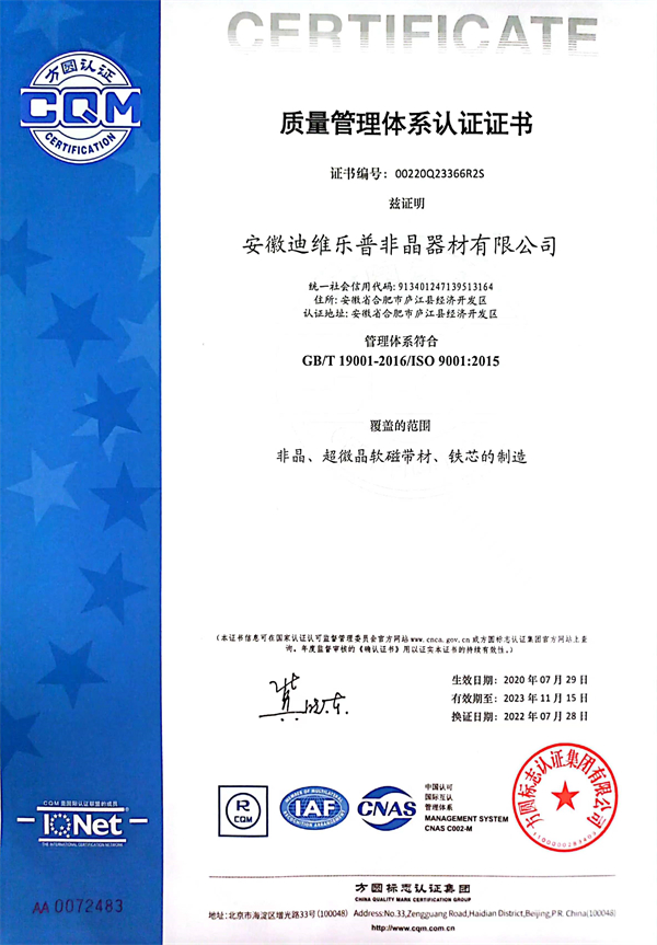 为响应国家标准化发展纲要,推动高质量发展,建设社会主义现代化国家。 安徽迪维乐普非晶器材有限公司、非晶合金电力互感器材料研究中心;为促进标 准化发展、提升标准化水平;实现企业有序发展、有规可循;产品质量有据可依、 方便客户甄别选用,特制定本企业质量标准。